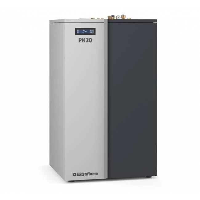La chaudière à granulés PK20 Extraflame assure le chauffage de votre maison et de l’eau chaude sanitaire. Cet appareil nouvelle génération diffuse une chaleur uniforme dans votre intérieur jusqu’à 573 m3, soit près de 230 m². Haut rendement (92,4%), combustion propre, fonction chronothermostat, auto-équilibrage de l’air, autoréglage de l’aspiration ou système de nettoyage automatique, le PK20 dispose de toutes les fonctionnalités pour combiner performances, sécurité et confort d’utilisation.