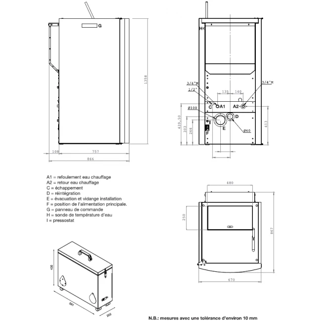 Le compacteur est composé d’un convoyeur à vis pour l’évacuation des cendres et d’une malette pour la collecte des cendres.