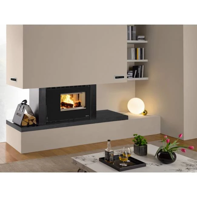 Robuste et moderne, l’insert à bois 80 est tout en fonte. Matériau reconnu sur le marché du poêle à bois, la fonte retient la chaleur et la diffuse lentement. De quoi profiter d’une chaleur douce et d’une ambiance chaleureuse sur plusieurs heures. Son rendement de 82.4%, sa puissance de 9.6 kW et sa capacité de chauffe pouvant aller jusqu’à 226m3 font de l’insert Crystal, une solution de chauffage aux performances optimales. La particularité de cet insert est d’être entièrement encastré dans le mur, ne laissant pour vue principale, que les flammes flamboyantes. Un insert moderne, pratique et pensé pour durer.
