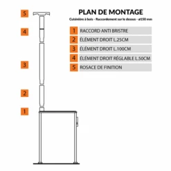 Ce kit de raccordement ne peut être installé que sur une cuisinière à bois avec une sortie des fumées en diamètre 150mm. Il est de votre responsabilité et important de bien suivre les règles de pose suivant les normes NF DTU 24.1 et 24.2, ainsi que les recommandations du fabricant de votre cuisinière.