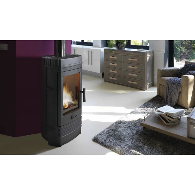 | Points forts : Puissance : 12 kW Rendement : 75% Post-combustion, technologie optimum 3 Feu continu 10 heures Vitre propre Longueur de bûches : 45 cm Chargement en façade Diamètre de buse : 150 mm | Caractéristiques Techniques :