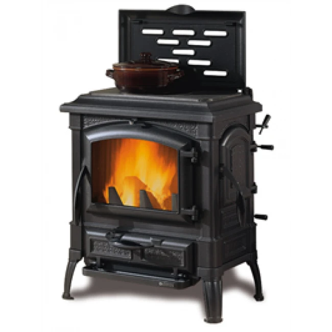 Ce poêle à bois dispose d’une plaque de cuisson en fonte polie. Située au dessus du foyer, laissez mijoter vos plats en profitant de la chaleur douce émise par l’appareil !