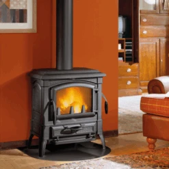 Revêtu de fonte, ce poêle de 160 Kg est particulièrement robuste et conçu pour durer. Il est extrêmement résistant aux fortes chaleurs grâce à son foyer en fonte et sa vitre céramique résistante à 750°C.