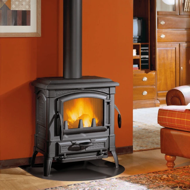La chaleur produite par la combustion du bois est stockée dans la fonte. Elle est ensuite restituée de manière optimale dans votre salon. La diffusion de la chaleur est lente, elle se poursuit même après extinction du feu.