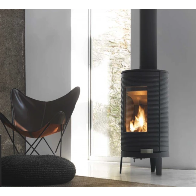 Puissance : 7 KW Feu continu 10 heures Rendement : + 75 % Taux de CO : 0,2 % Dimensions : H : 883 mm Lg : 372 mm Prof : 392 mm Longueur de bûches : 33 cm Poids : 116 Kg Chargement en façade Vitre propre Diamètre de buse : 150 mm Couleur disponible : finition anthracite Départ des fumées : sur le dessus Système post-combustio