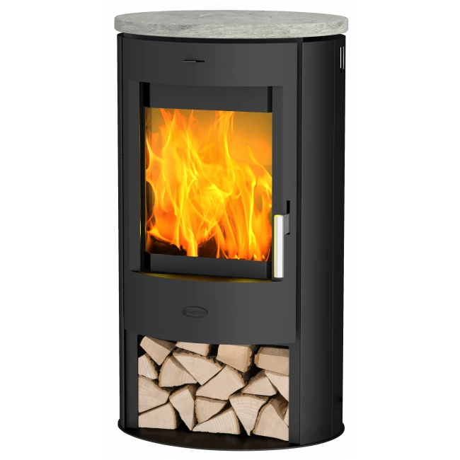 - Pierre ollaire: Ce poêle est équipé sur le dessus d’une pierre ollaire, une pierre thermique qui emmagasine la chaleur et la diffuse pendant une longue période.