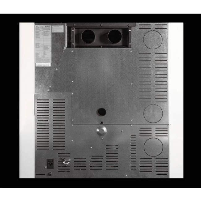 Grâce à ses deux sorties canalisables, le poêle à granulés Ricanto est capable de chauffer, en plus de la pièce où il se trouve, deux pièces supplémentaires. Ces sorties se trouvent à l’arrière du poêle et sont prêtes à être raccordées.