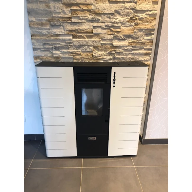 De par son haut rendement de 96% et à ses fonctions de programmation, il consomme peu de granulés. Son design moderne et ses dimensions (profondeur : 24,8cm) en font un poêle idéal pour gagner un maximum de place.