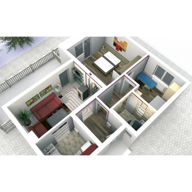 - Tout équipé, prêt à raccorder : composants nécessaires au fonctionnement du système de chauffage intégrés