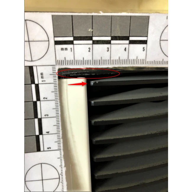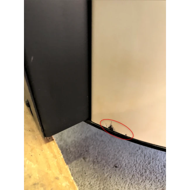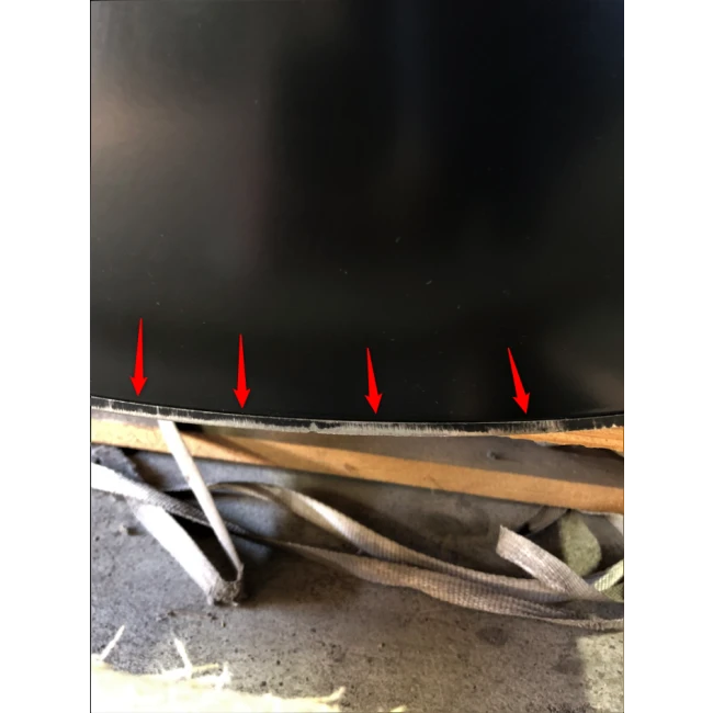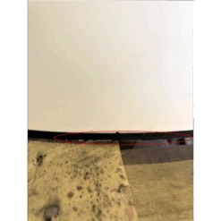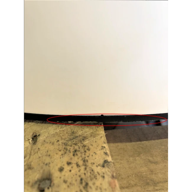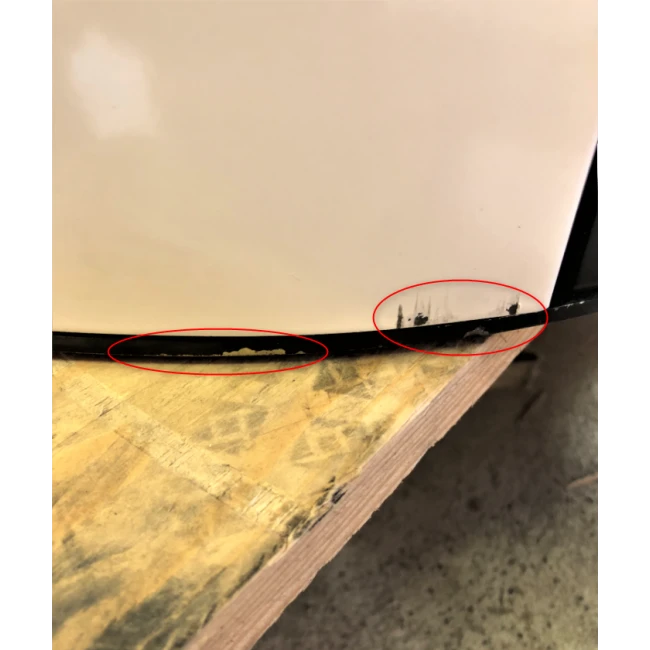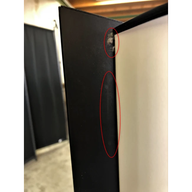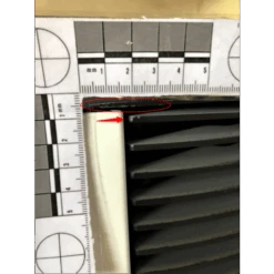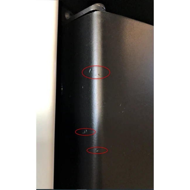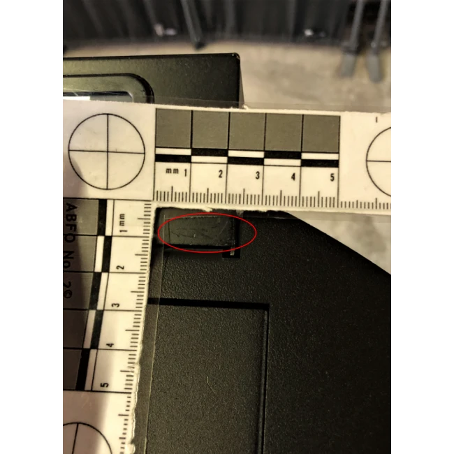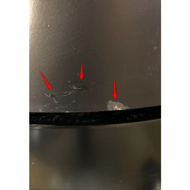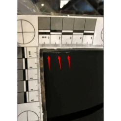 Des rayures sont sur le haut et le bas du côté droit ainsi qu’une tâche