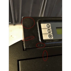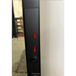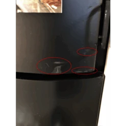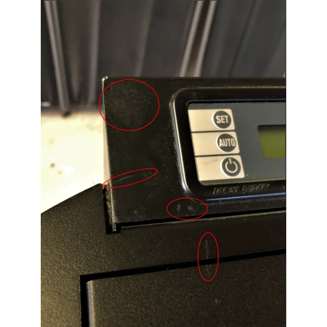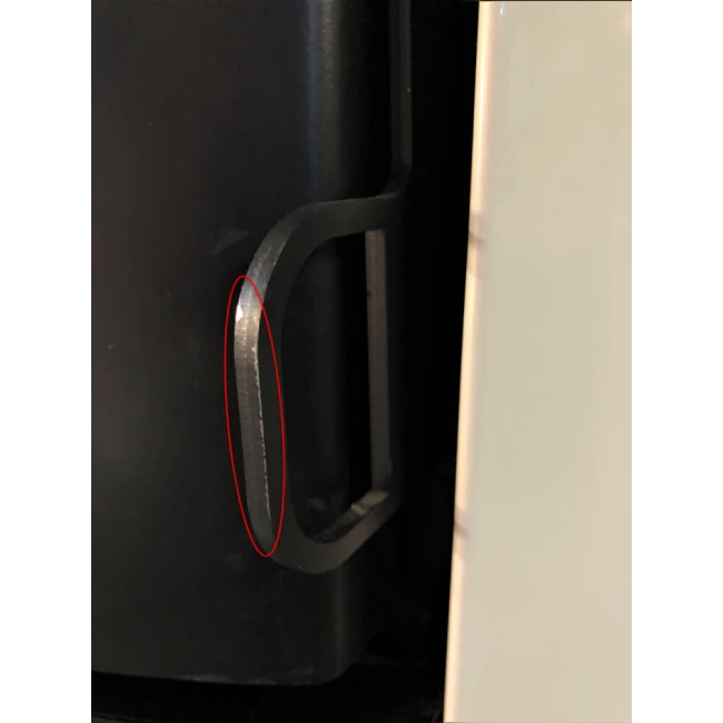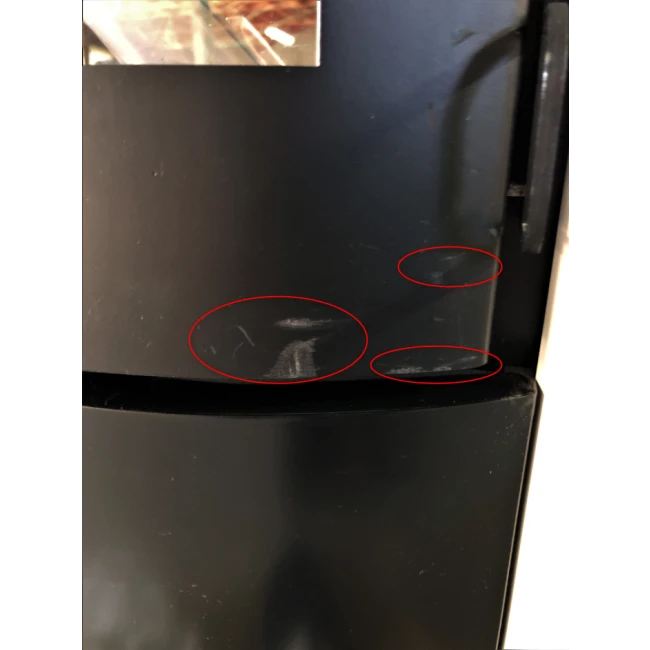 Plusieurs rayures se trouvent sur la porte et la poignée du poêle.