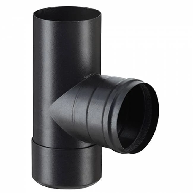 Té avec tampon émaillé pour le raccordement arrière sur le poêle.